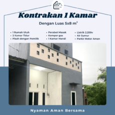 Harga tertera hanya 1 rumah, 1 kamar, 1 kamar mandi, dapur, ruang tamu dengan durasi sewa satu bulan.
